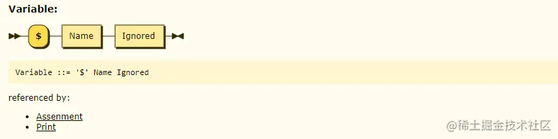 是不是已经能看懂了? 没错, Variable 由一个美元符号 $ 和 Name 表达式构成.