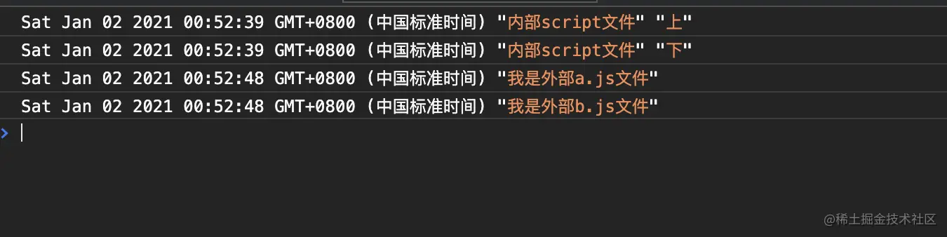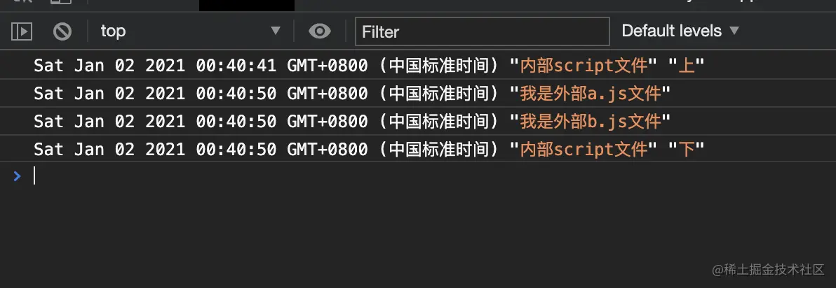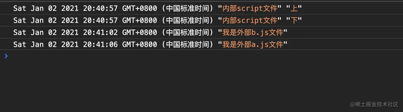 console.log(new Date(Date.now()), "内部script文件", "上");