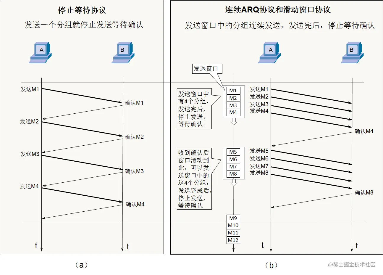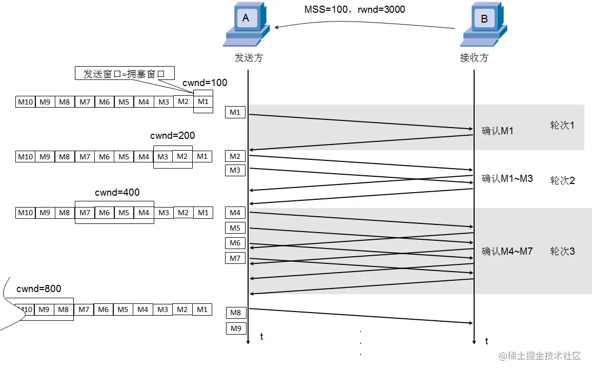 - 发送方的发送窗口大小不能超过接收方给出窗口大小