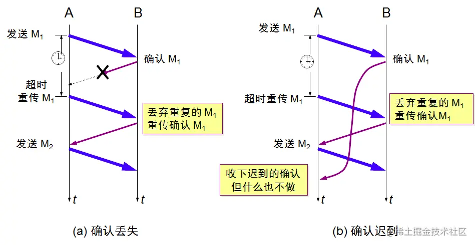 - 例如上述情况,client没有向server的确认发出确认,server由于收不到确认,就知道client并没有要求建立连接