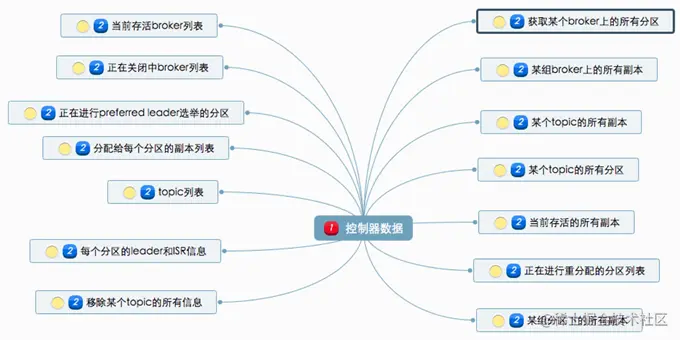 控制器中保存的这些数据在Zookeeper中也保存了一份。每当控制器初始化时,它都会从Zookeeper上读取对应的元数据并填充到自己的缓存中。