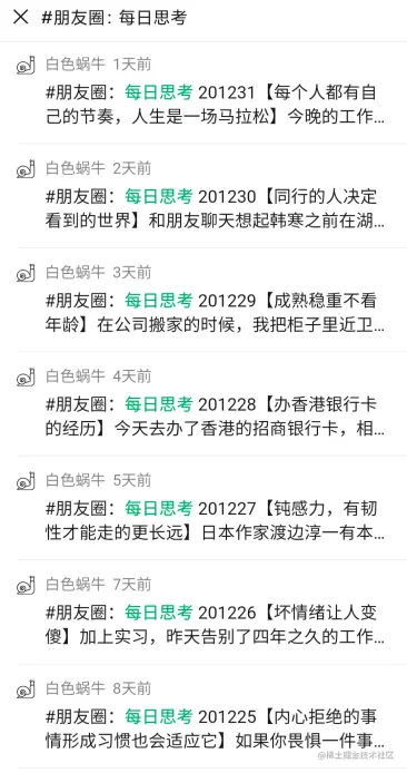 - 【虎头蛇尾的毛病变了】每日思考的坚持没有断,朋友圈、语雀和微信圈子持续在更新。