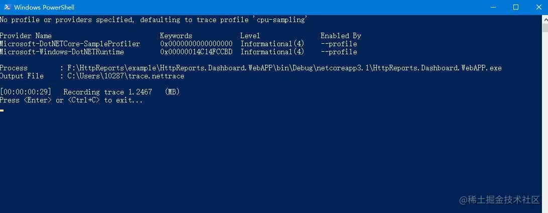 dotnet-trace collect --process-id 20196 开始实时获取信息