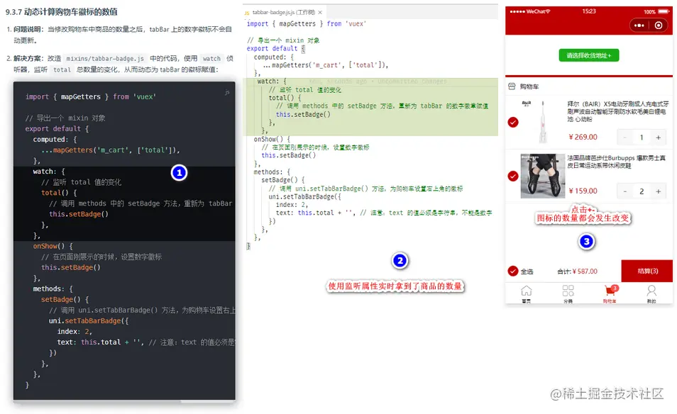 动态计算tabBar中购物车徽标的值