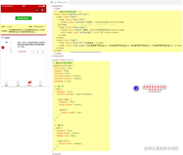 渲染收货地址组件的UI结构 - 下