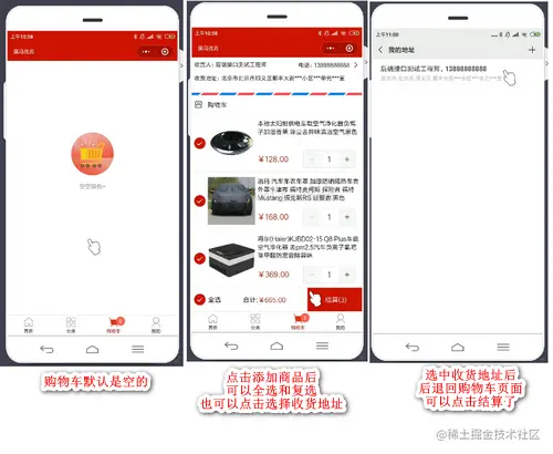 演示购物车页面要实现的功能