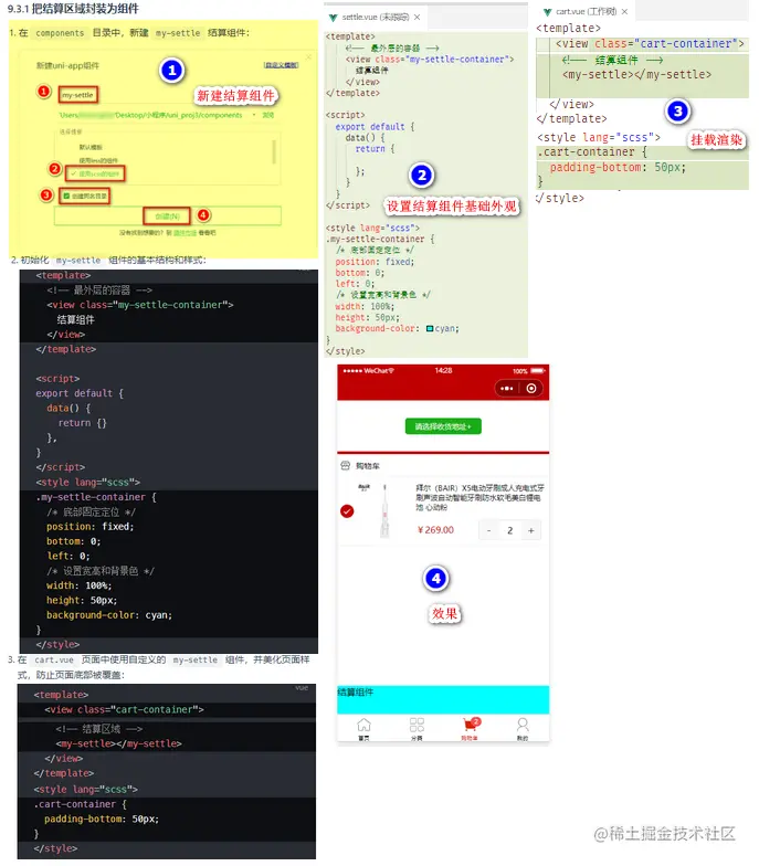 把结算区域封装为独立的组件