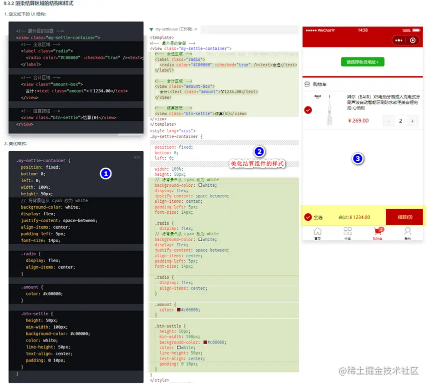 渲染结算区域的结构和样式