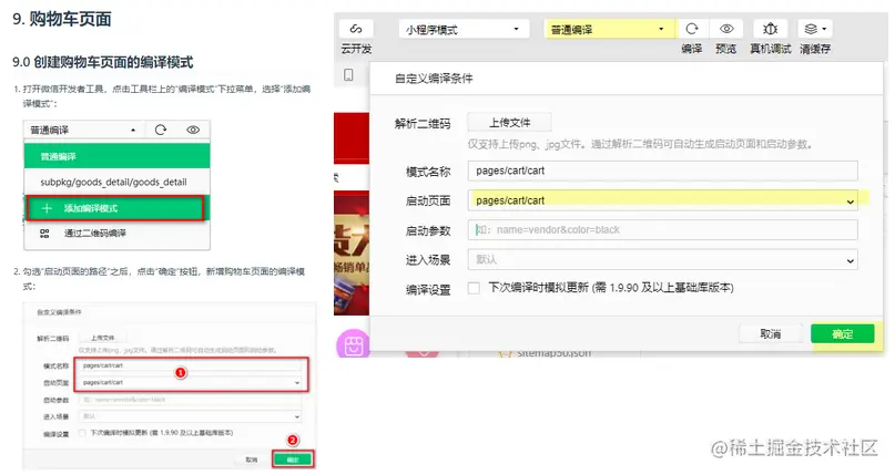 创建购物车页面的编译模式