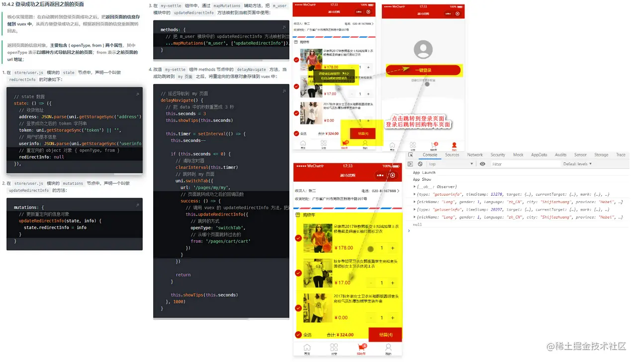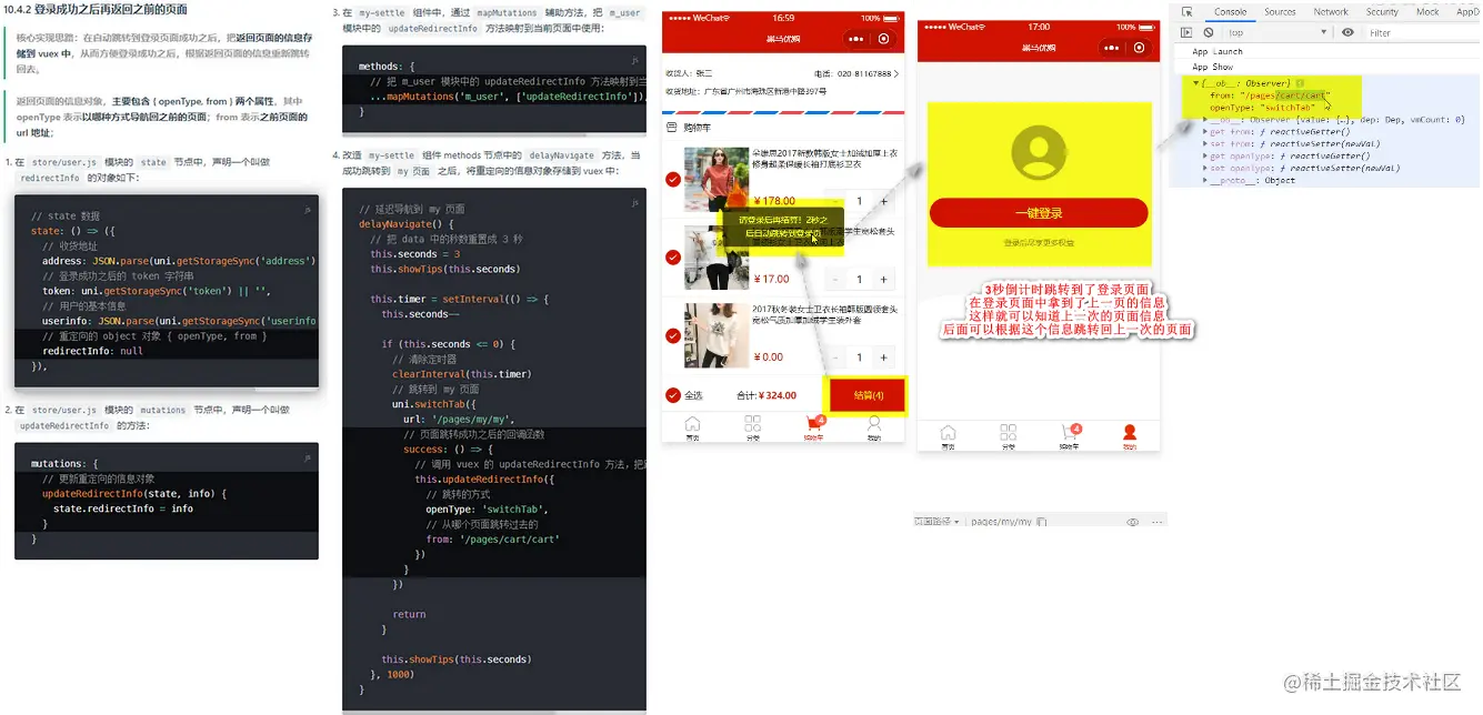 根据redirectInfo导航到登录之前的页面