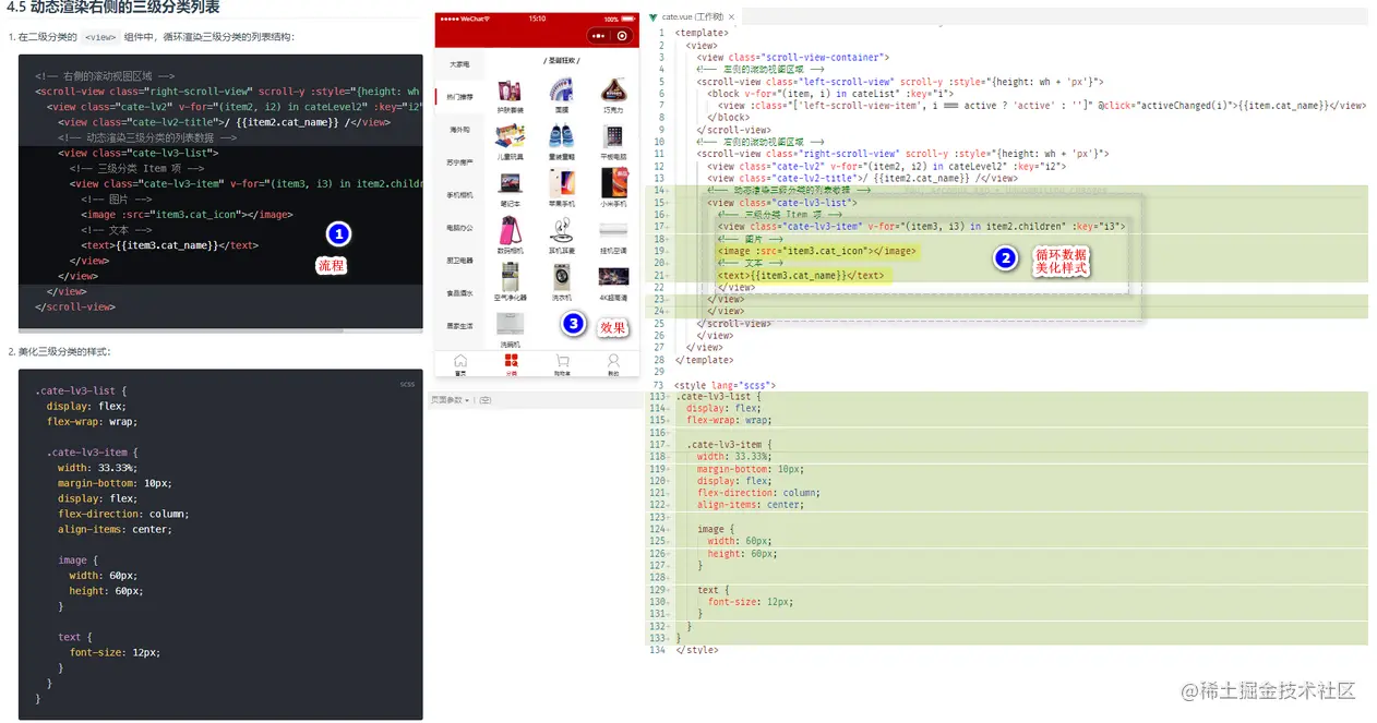 动态渲染右侧的三级分类列表