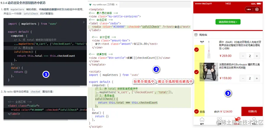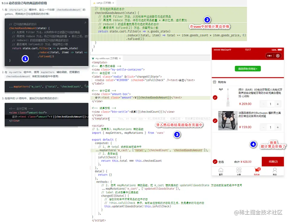 动态渲染已勾选商品的总价格