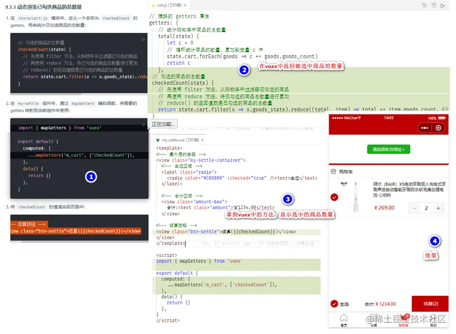 动态渲染已勾选商品的总数量