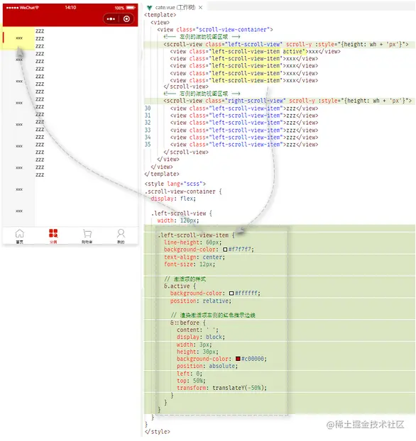 美化左侧scroll-view中item项的样式