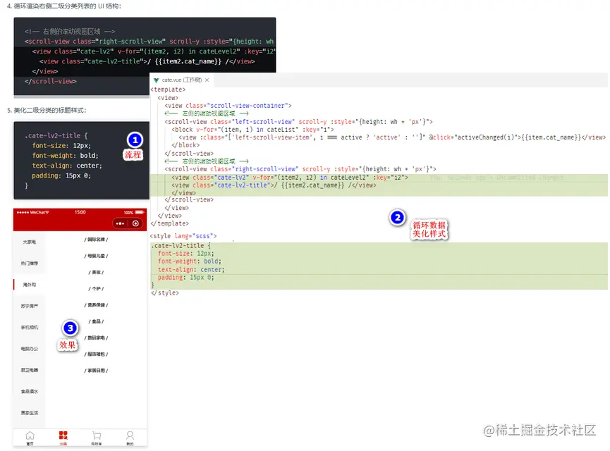 动态渲染右侧的二级分类列表