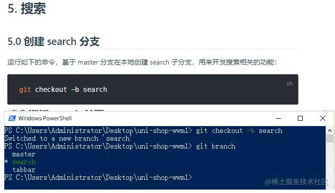 创建search分支