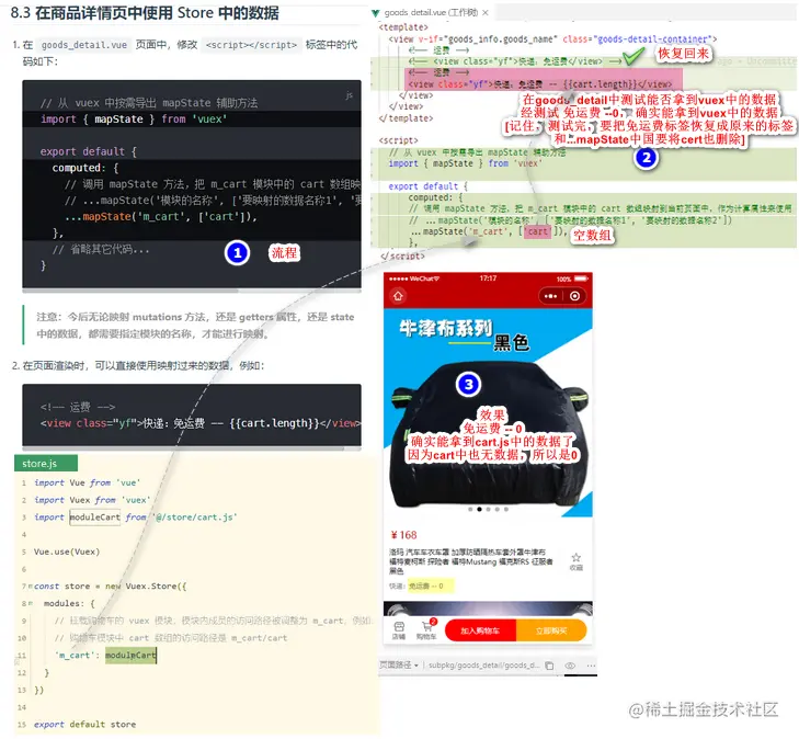在商品详情页中使用store中的数据