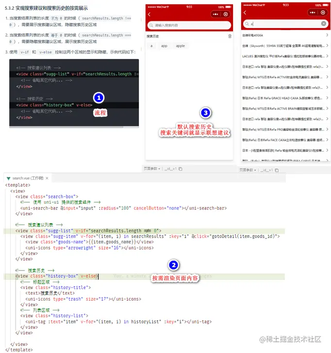 实现搜索建议和搜索历史的按需展示