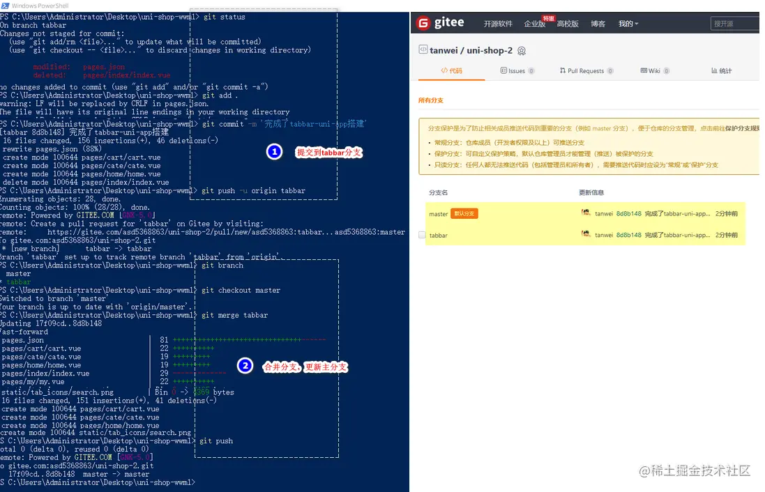 分支的合并与提交