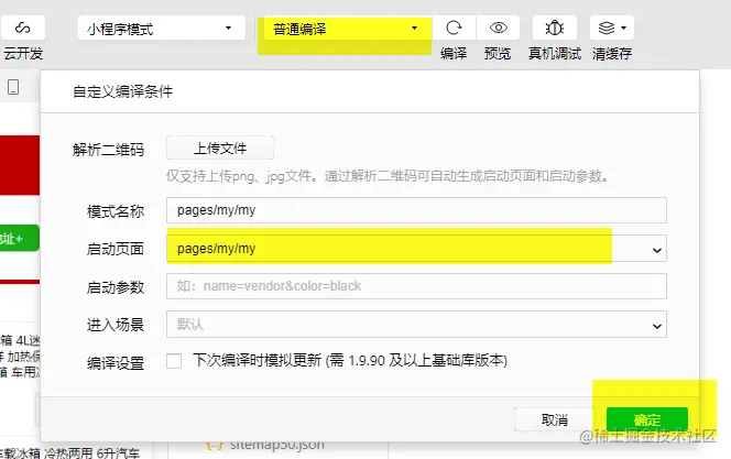 登录 - 定义my页面的编译模式