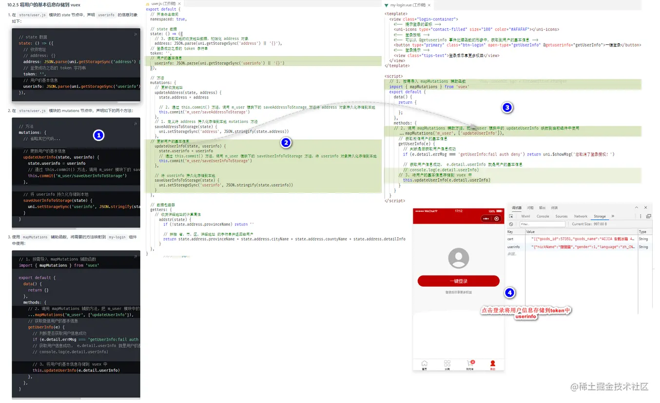 将用户的基本信息存储到vuex