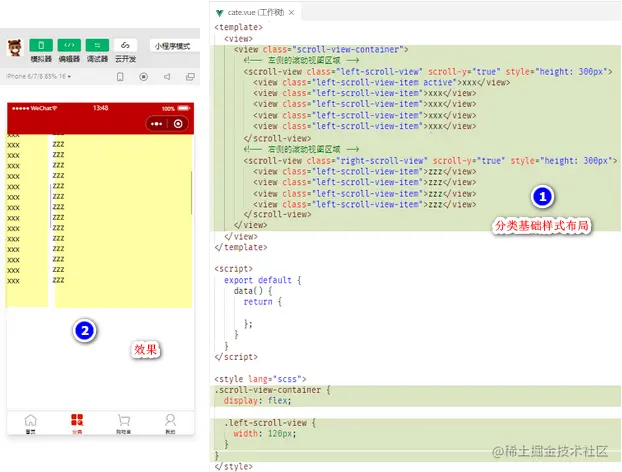 实现分类页面滑动区域的左右布局