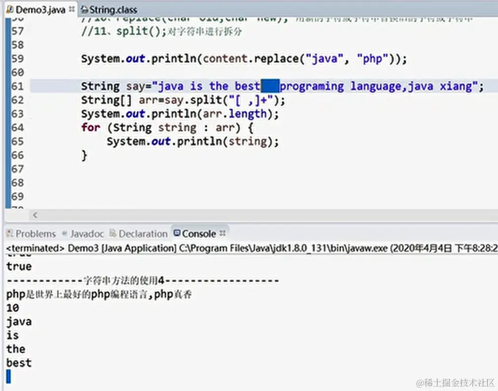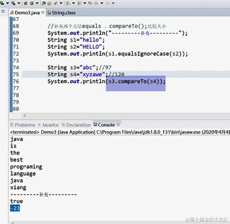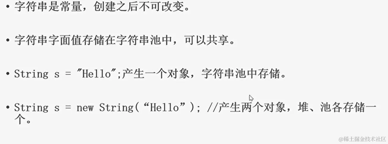 String类 ifubing 2021-01-03 60 阅读1分钟 定义字符串 关注它的位置 定义了字符串 内存中的区域 效果 变量值改变的情况 效果 新建一个字符串变量的时候 效果 笔记 另一个字符串的创建方式 比较两个字符串 常用方法 演示 按空格与逗号进行分割,支持多个 compareTo 当两个符号差不多时比较长度