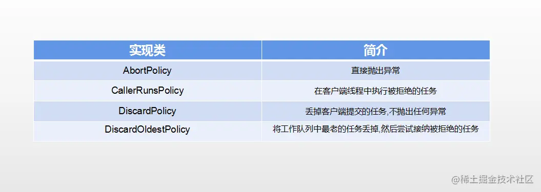 RejectedExecutionHandler是一个接口,JDK有默认的实现: