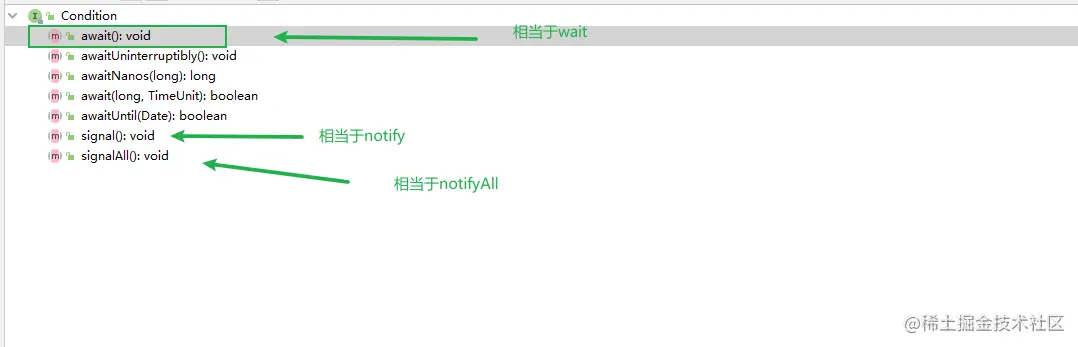 上面模拟的生产者消费者模式,在刚开始生产者会率先开始生产,即使消费者先被CPU选中,也会陷入等待状态,在生产完成100个包子之后,消费者开始消费包子。这个时候就是一种动态平衡了,因为按照我们的代码,在包子的数量达到100的时候,生产者唤醒所有的线程,于是我们大概就能看到一个动态平衡了,包子的数量总是维持在一百个。但是如果说我们希望的场景是消费者线程卖完了仅仅通知生产者线程呢?生产者生产够100个包子后仅唤醒消费者线程呢? 那么notify和notifyAll就不满足我们的要求了,notify仅仅唤醒任意一个处于对象锁下的线程,notifyAll通知所有。除此之外notify和notifyAll只能配合synchronzed使用,我们希望显式锁也能有类似的操作,实现通知和唤醒,这也就是condition类出现的原因。