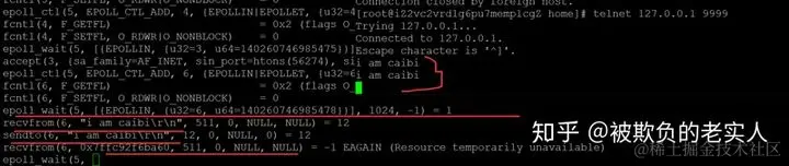 **epoll_wait 得到就绪的文件描述符读事件返回,然后调用read,其实跟RECVFROM功能一样