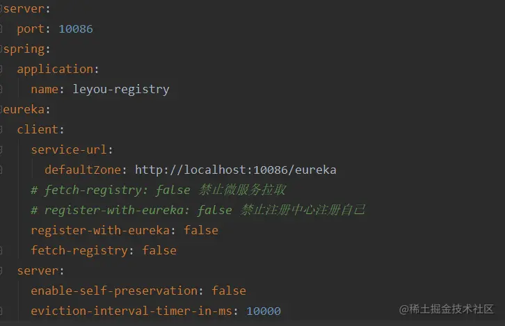 设置服务为注册中心时,需要关闭eureka.client.fetch-registry与eureka.client.register-with-eureka,在做注册中心集群的时候,register-with-eureka必须打开,因为需要进行相互注册,不然副本无法可用.