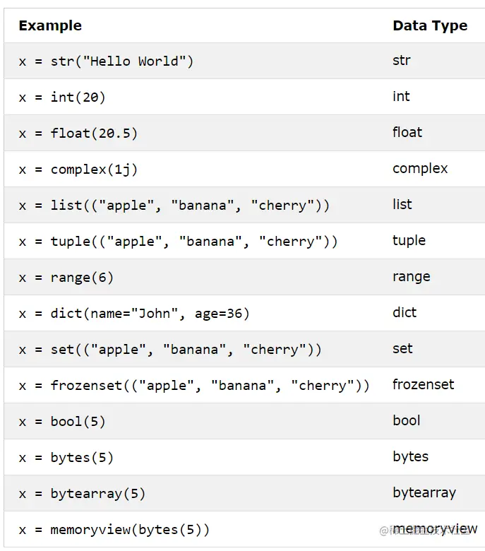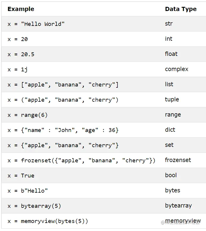 当你将一个值赋给一个变量的时候,数据类型罗列如下: