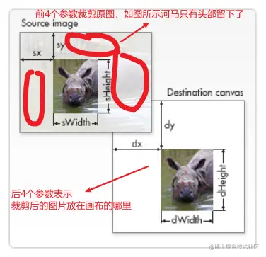 ctx.drawImage(img, sx, sy, sWidth, sHeight, dx, dy, dWidth, dHeigh)