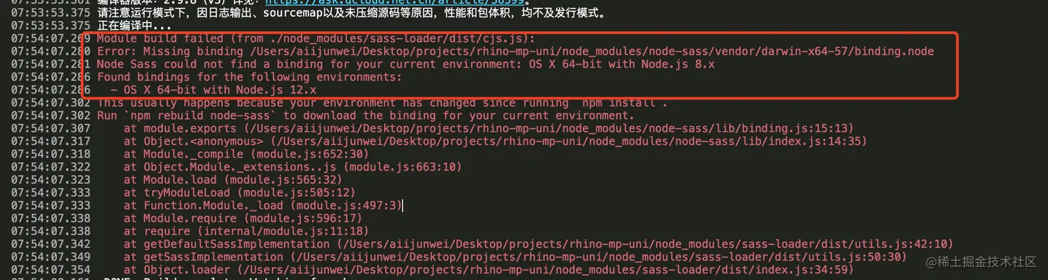 大概意思就是找不到匹配的node-sass bindings,由于本机node版本与HbuilderX内置的node版本不一致导致。那么按照提示来试试"npm rebuild node-sass",并没有什么改变,可能姿势不对,再来一次,还是一样!!!兄die,大概你对姿势不对有什么误解吧。