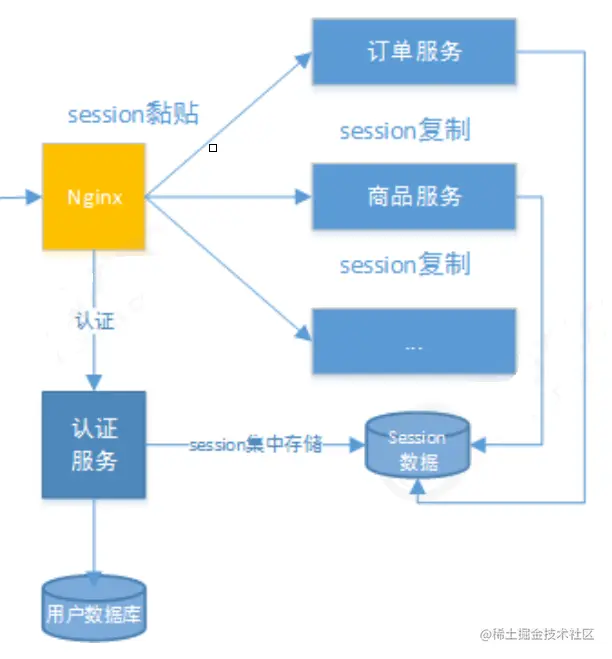 session,使session保持一致,对外透明。 - Session黏贴:当用户访问集群中某台服务器后,强制指定后续所有请求均落到此机器上。
