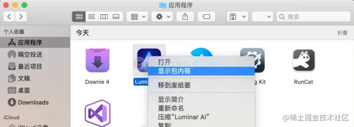 第二步:选中应用,右键选择「显示包内容」