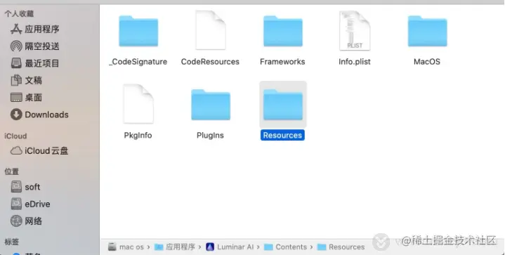 继续从多个文件夹中找到「Resources」文件夹 并打开
