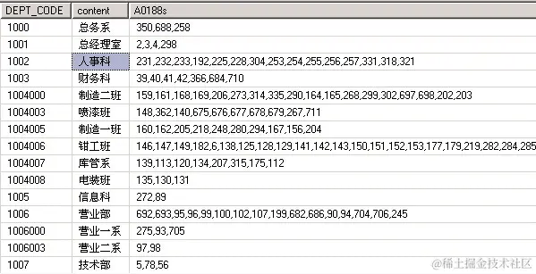 部门编码、部门名称、部门人员ID(中间用逗号分割)