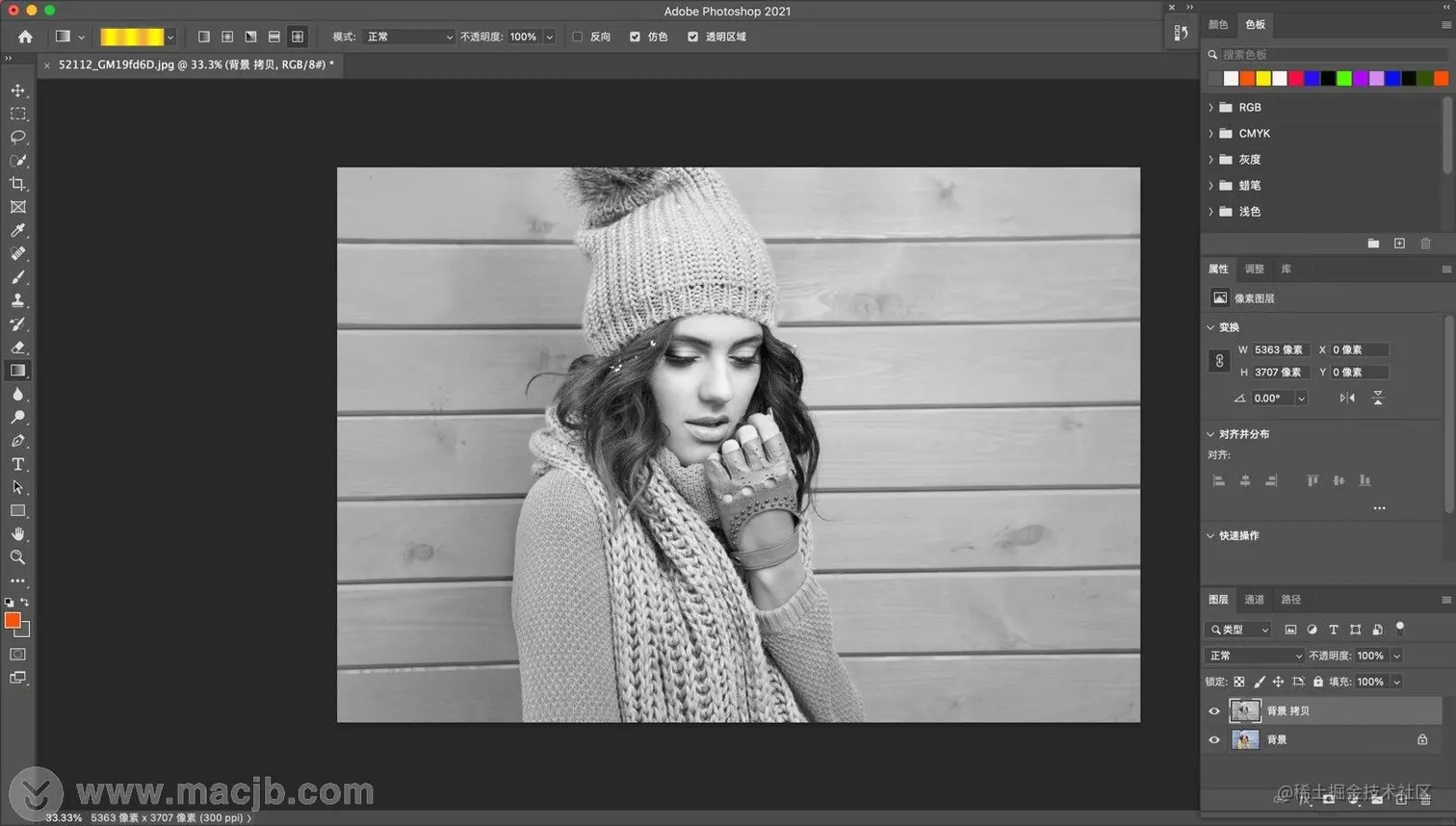 去色完成,如图所示: