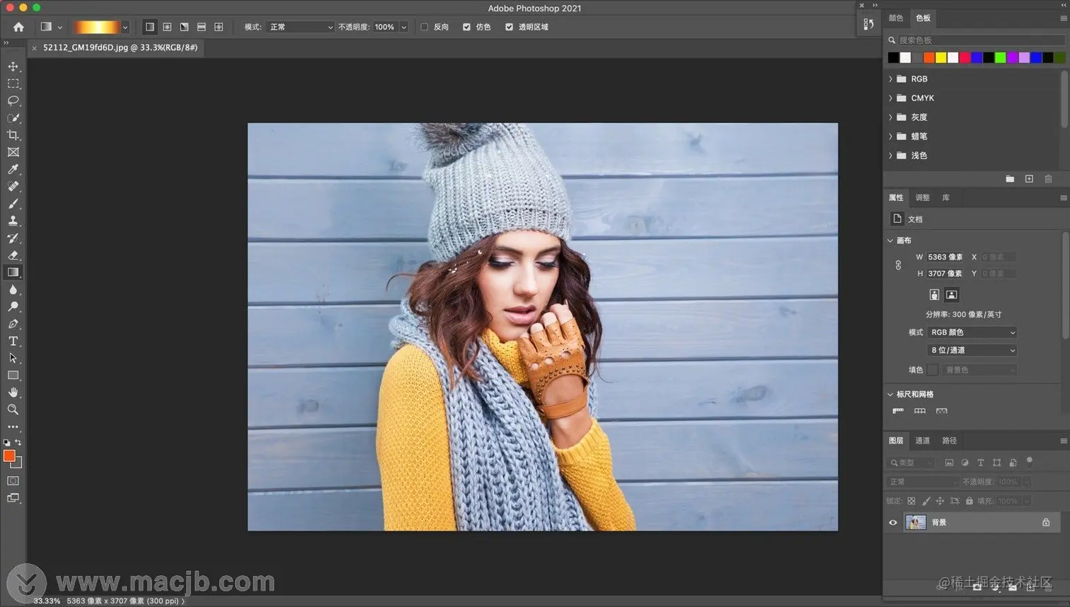 首先,用ps打开你需要进行渐变调整的图片背景,如图: