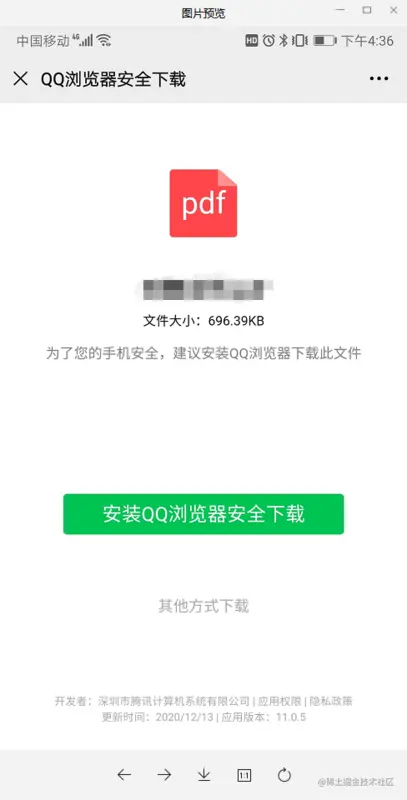 先展示一个诱导下载QQ浏览器的页面,需要选择【其他方式下载】,多了一步,还好,能实现下载