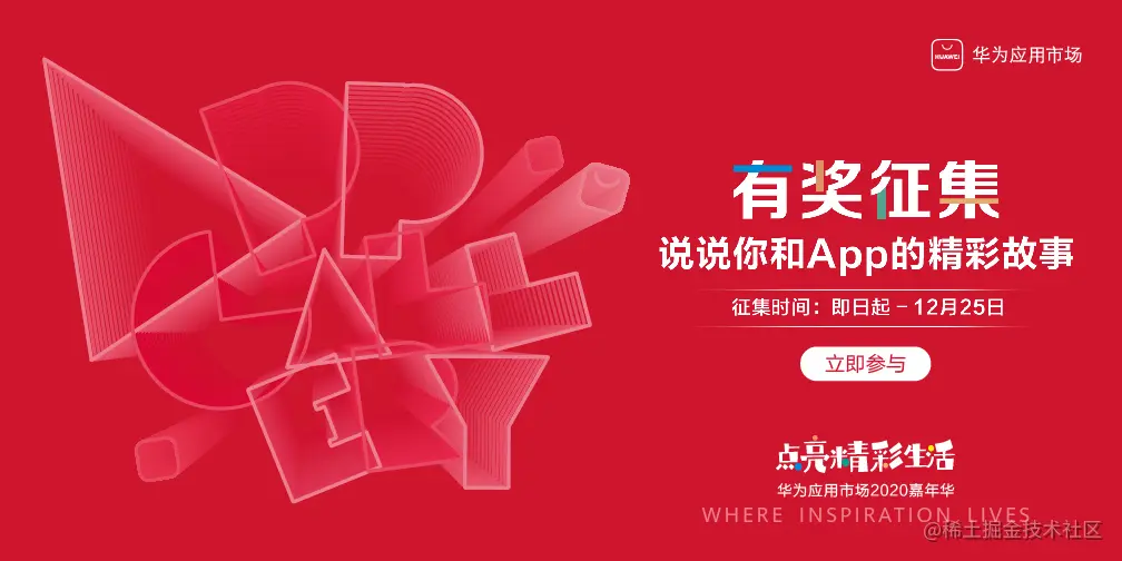 在华为应用市场2020嘉年华中,华为应用市场线上发起了「说说你和App 的精彩故事」有奖征集活动,邀请广大用户参与话题互动:#手机里不想卸载的App#、#好用冷门的宝藏App#、#App对我生活习惯的改善#、#让我印象深刻的App界面设计#,以及“应用点亮生活”主题征文,聚焦于App带来的生活改变,倾听更多用户的声音。