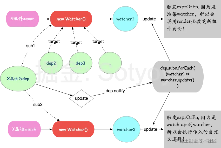首先,watcher绑定的时候,默认要执行一遍this.get方法,这样我们就完成了渲染watcher一样的行为,那就是'touch'到这个属性,让依赖项感知到了自己被依赖,添加订阅者,并且此时的值就是初始值,我们把它记录到watcher上,