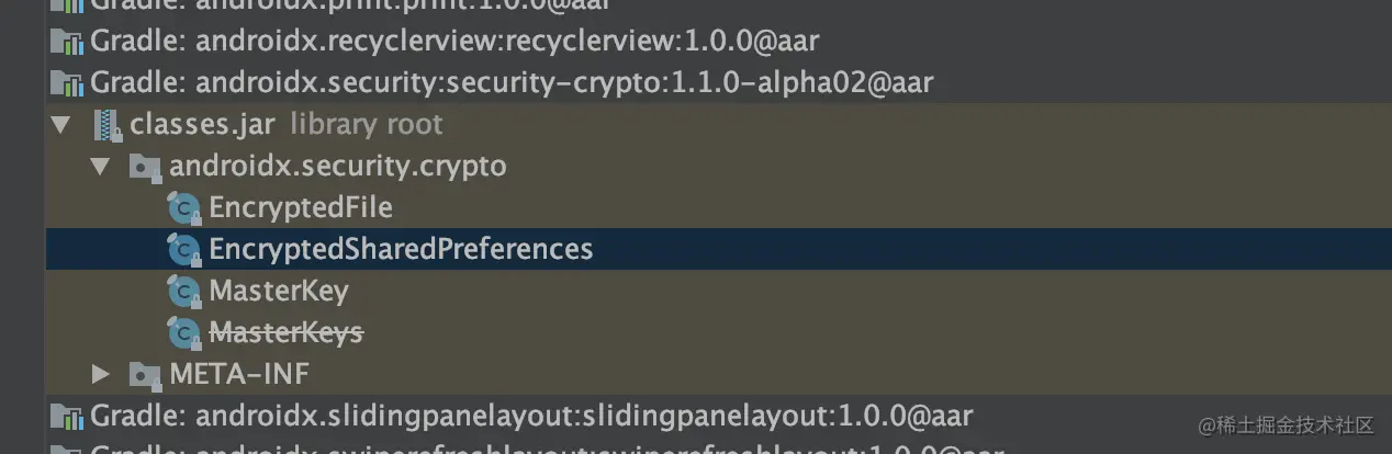 Android官方提供的Security不仅可以对SharedPreferences中的数据进行加密,也可以对文件进行加密操作。使用起来也很简单,感兴趣的小伙伴可以查看下官方文档(文末给出链接)。
