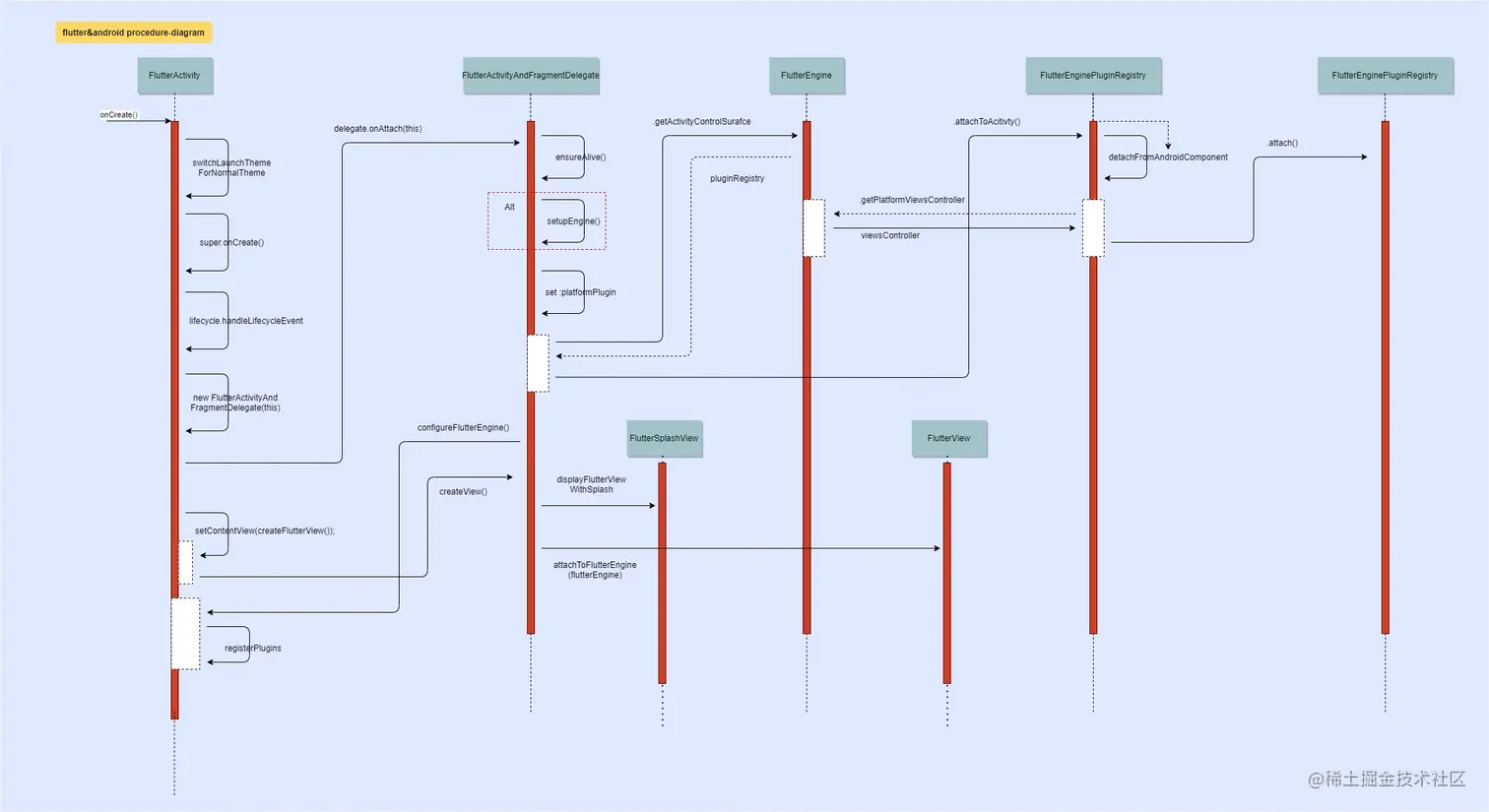 另外,虽然上面的代码中使用了子线程,但是最终在这些任务没有完成前,是不会进入flutter侧的,我们接着走FlutterActivity。