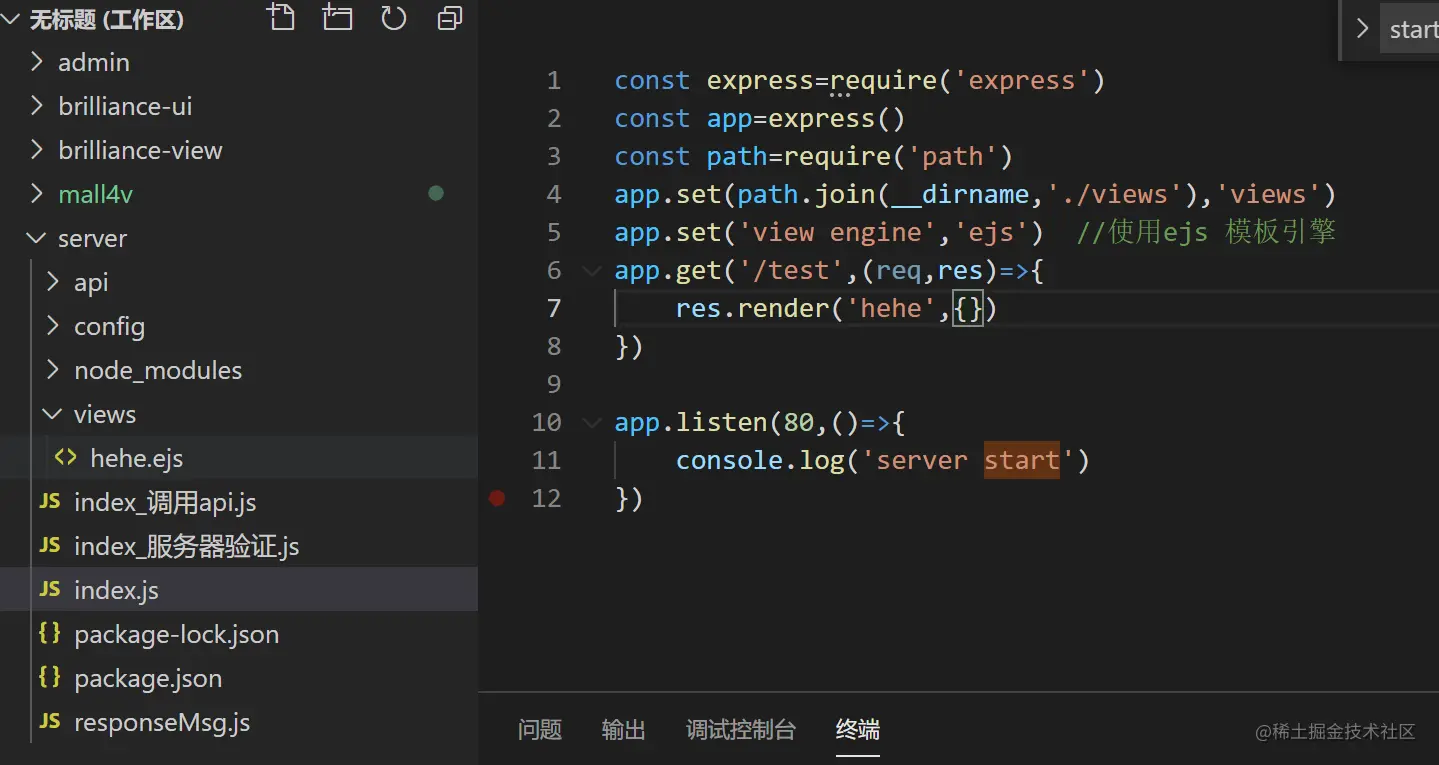 使用ejs模板引擎 app.set('view engine','ejs')
