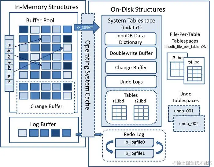 <2> 物理上主要由系统用户数据文件,日志文件组成,数据文件主要存储MySQL字典数据和用户数据,日志文件记录的是data page的变更记录,用于MySQL Crash时的恢复。