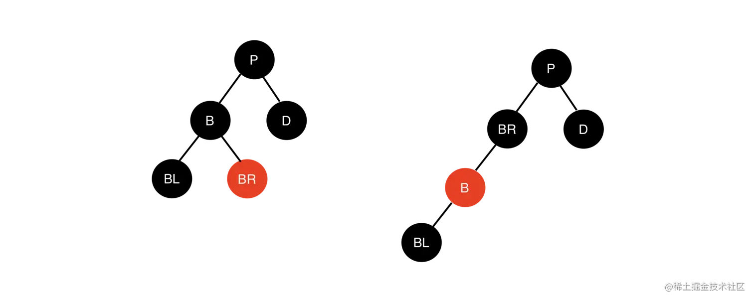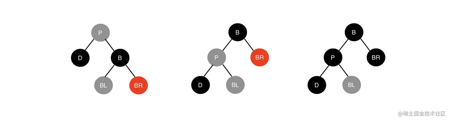 1.对兄弟节点B和其右子节点BR进行左旋,并交换颜色