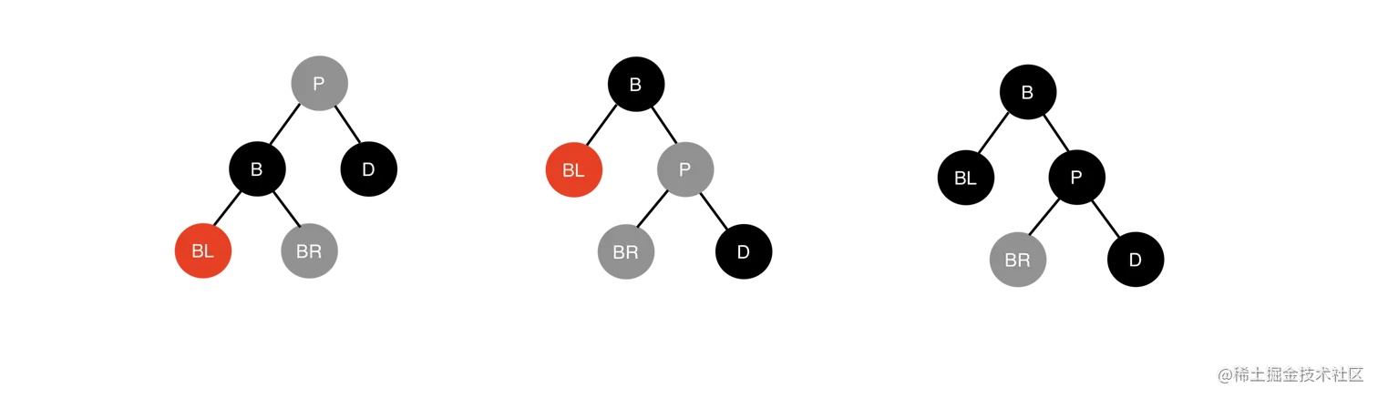 2.将父节点P变为黑色,将原兄弟节点的左子节点BL变为黑色