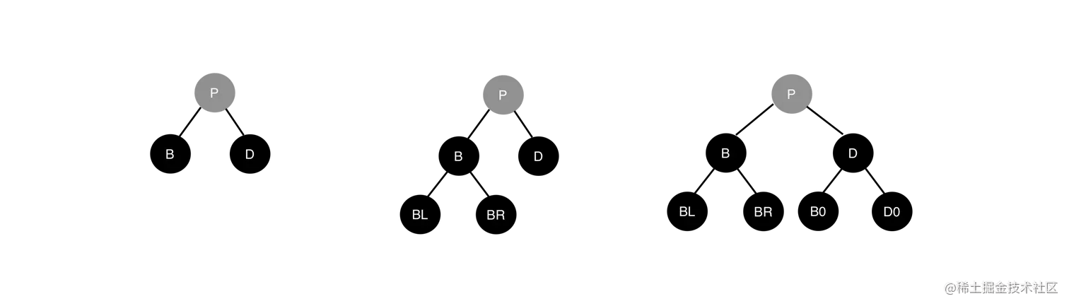 //兄弟节点为红色节点,兄弟左右子节点一定都为黑色节点